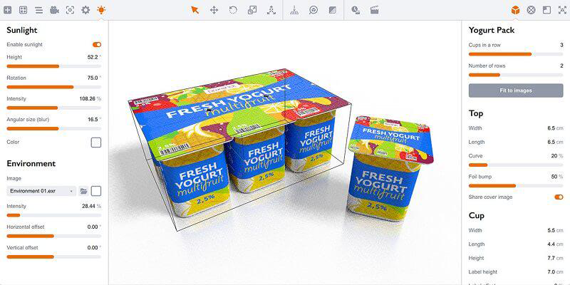 - Visualice modelos de envases realistas con renderizado 3D para una mayor mejora.