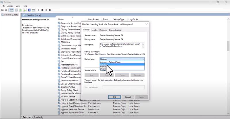 - Paso 2. Desplácese hacia abajo por la pantalla hasta encontrar FlexNet Licensing Service 64 en la lista de servicios.
