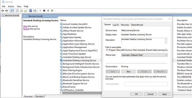 Reinstale el servicio de licencias de escritorio de Autodesk.