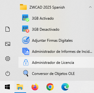 Dentro del grupo de programas de ZWCAD tenemos un acceso directo al Administrador de Licencias