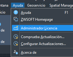 Dentro de ZWCAD en la barra superior, en la pestaña ‘En línea’, encontramos la opción de abrir el ‘Administrador de Licencia’. Si tiene activado el menú clásico, esta opción se encuentra dentro del menú ayuda.