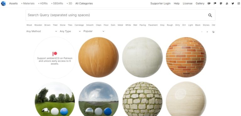 ambientCG, desarrollado por Lennart Demes, es una de las bibliotecas de texturas en línea más grandes y de mayor calidad. Ofrece más de 1300 texturas y recursos 3D de alta calidad, que incluyen, entre otros, texturas de tablones, paredes, madera y piedra. Estos recursos cubren múltiples campos de aplicación, desde visualización arquitectónica hasta desarrollo de juegos, producción cinematográfica y diseño de productos.