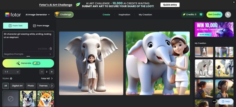 Si buscas un creador de personajes de anime en 3D en línea y gratis, Fotor 3D Character Creator puede ofrecerte una solución. Esta herramienta impulsada por IA no solo puede convertir fotos 2D en personajes 3D, sino que también genera automáticamente imágenes planas de estilo 3D con las características y estilos correspondientes según las descripciones de texto que introduzcas, cubriendo varios tipos, como personajes, animales, criaturas fantásticas, etc.