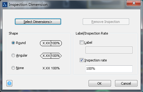 La inspección de dimensiones le permite agregar o quitar información de inspección para una dimensión seleccionada, recordándole la frecuencia con la que se deben verificar los objetos de diseño para garantizar que el valor de dimensión y las tolerancias de estos objetos se encuentren dentro del rango especificado.