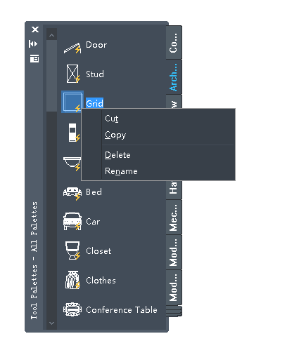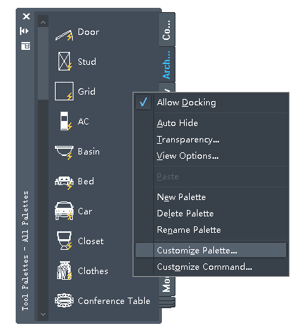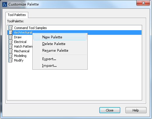 Además, también puede importar o exportar paletas existentes en el cuadro de diálogo Personalizar paleta que se abre al hacer clic con el botón derecho en el área de espacio de la paleta. En pocas palabras, las Paletas de herramientas se han mejorado para ser más prácticas y fáciles de usar.