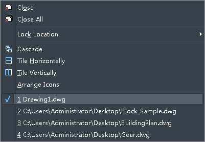 Los archivos abiertos se mostrarán en los menús de Windows y en el menú desplegable de las pestañas de archivos, ayudándole a administrar y elegir archivos abiertos de una manera organizada.