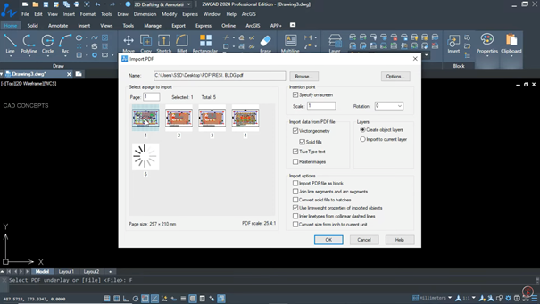 Comparando ZWCAD 2024 con ZWCAD 2025, la nueva versión acelera significativamente el proceso de importación de PDF. En ZWCAD 2024, la importación de múltiples archivos PDF requería repetidos clics y carecía de una adecuada gestión de capas. ZWCAD 2025 simplifica esto con la función «Usar Capa PDF», lo que le permite importar documentos PDF enteros a la vez con una gestión adecuada de las capas.