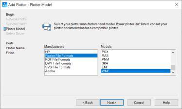 El tipo de plotter de formatos de archivo ráster soporta el formato WMF.